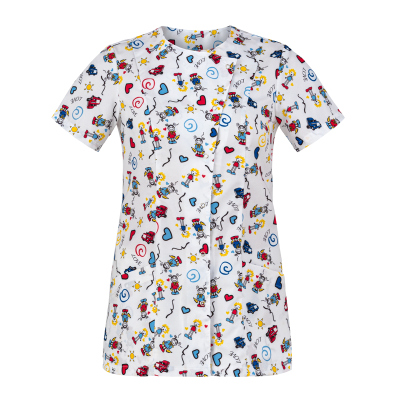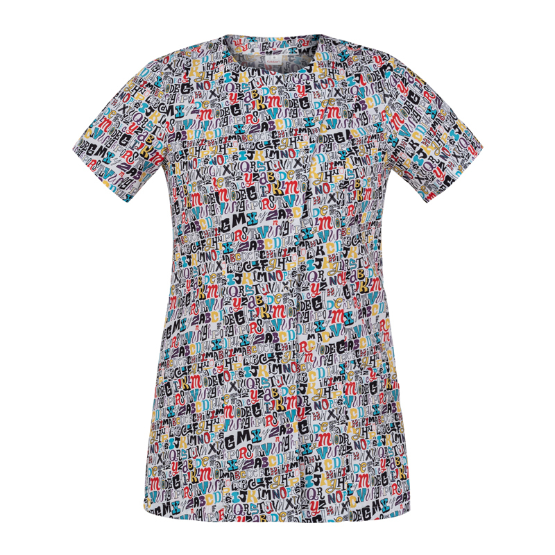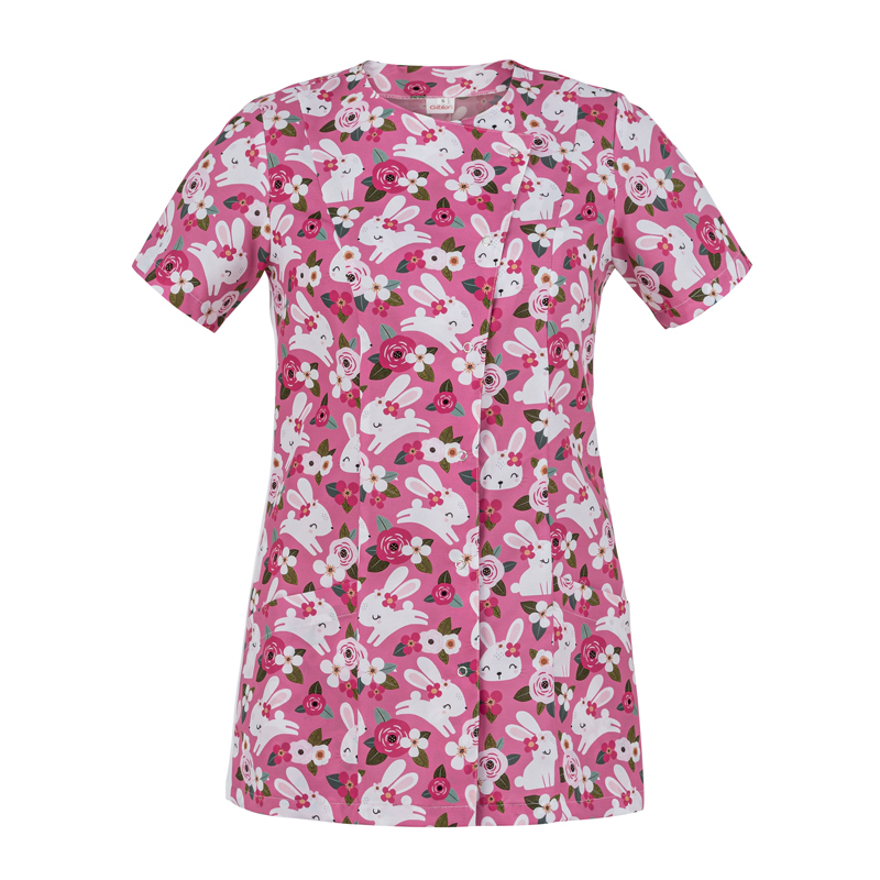 La casacca Elea è un capo fresco e sbarazzino, pensato per tutti quei professionisti che lavorano a contatto con bambini ed animali o comunque in ambienti nei quali la componente umana ha molta importanza. È proposta infatti in divertenti fantasie, da Cani, Coniglietti e Gatti, fino a Denti e Spazzolini, spaziando dalla variante Lettere e quella Lui&Lei, tutte in morbida ed ultraleggera microfibra di soli 86 g / m². Grazie all'esclusivo sistema Dry&Clean, il tessuto è dotato di caratteristiche di repellenza all'acqua e alle macchie, conferendo un aspetto sempre pulito e impeccabile. La casacca Elea presenta due pratiche tasche davanti, un'abbottonatura con automatici in nikel, e una linea Slim Fit accentuata dai tagli sul davanti e sul dietro. I due fianchetti in maglia di piquet accentuano l'areazione e quindi la sensazione di freschezza. Collezione G' Health&Wellness Collection Tessuto Dry&Clean Fresh&Stretch Ultra light Dettagli Abbottonatura a vista con automatici 2 tasche Rete nei fianchetti dietro Slim Fit