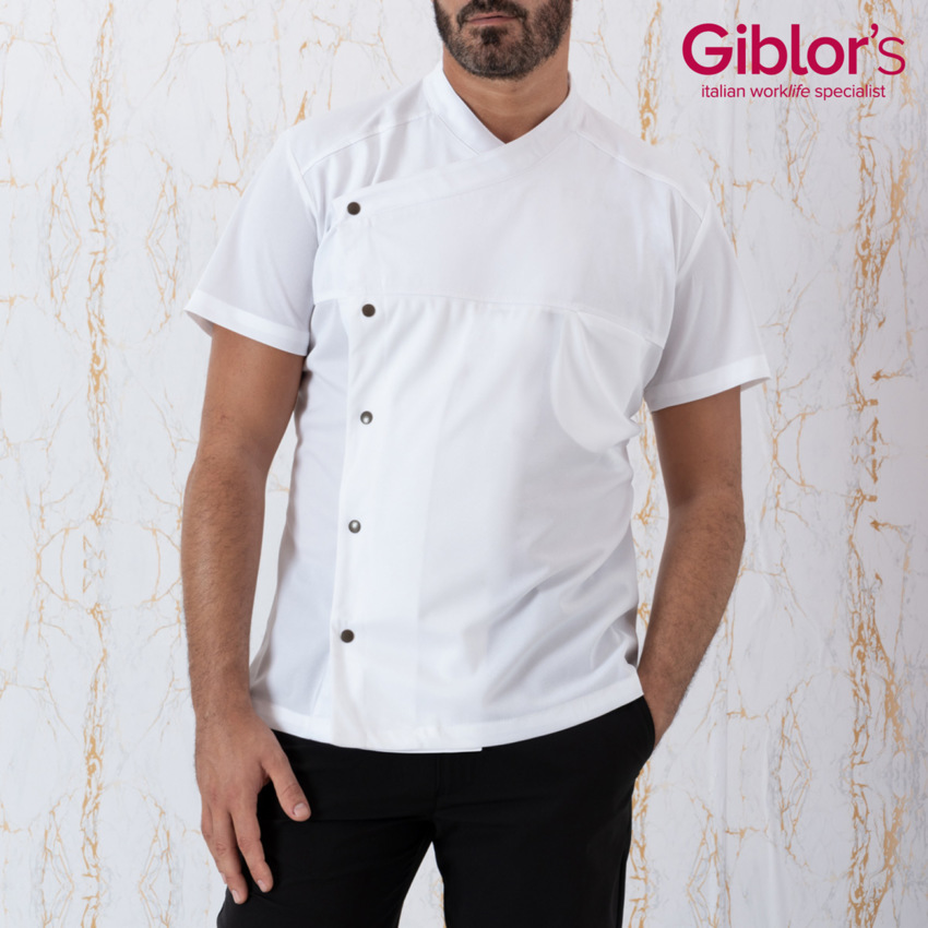 Innovativa giacca a maniche corte realizzata in tessuto misto LUXSATIN e FRESH&STRETCH: la parte superiore del fronte è in morbido cotone poliestere, mentre il resto del capo è realizzato in maglia piquet 100% poliestere leggerissimo, estremamente traspirante. Comfort, freschezza e libertà nei movimenti sono garantiti! Con eleganti bottoni a pressione in metallo brunito e taschino a scomparsa sul petto. Stiro facile. Collezione G’ Glamour Collection G' Health&Wellness Collection Tessuto Fresh&Stretch Comfort Dettagli Abbottonatura a vista con automatici Taschino sul petto Rete allover Inserti in tessuto Slim Fit